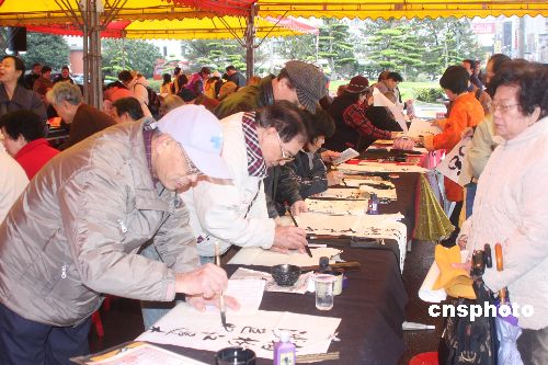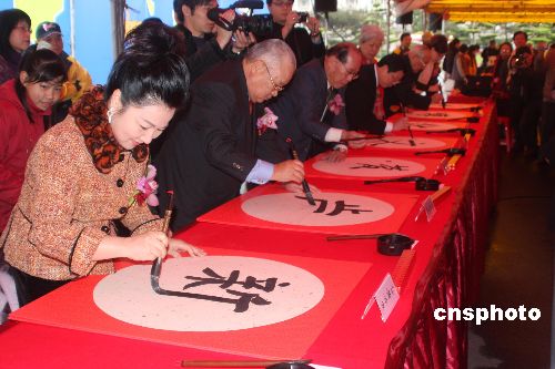 臺灣一年一度的新年開筆大會,2月3日在臺灣領導人辦公室前廣場舉行。報名參加書法揮毫者達三千多人。中新社發 耿軍 攝