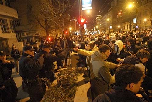 組圖:千名塞族青年攻擊美歐使館(2)