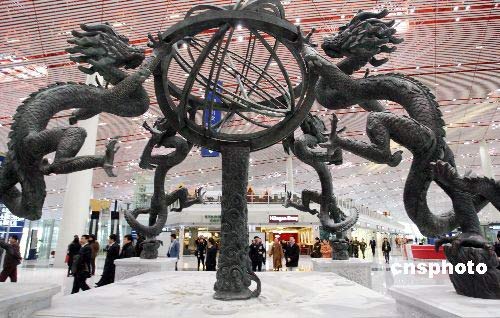 中國雕龍渾天儀落戶北京首都機場3號航站樓。