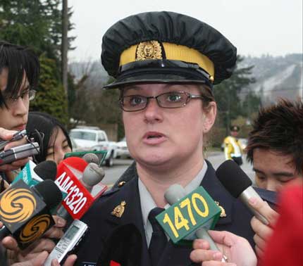 本拿比皇家騎警發言人就一名記者被捕事件接受采訪,該記者懷疑冒充親友而被警方帶走,并遭沒收攝影器材。