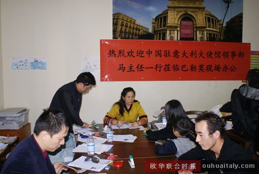 辦公現場設在巴勒莫華僑華人聯誼會總部內。當日,聯誼會門前人頭攢動,聞訊而來的上百名華僑華人一早就趕到了領事部的辦公現場。兩天的現場辦公,共辦理各類公證認證、換照等三百余件。