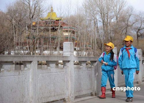 3月20日,兩名拉薩小學生走在放學回家的路上。