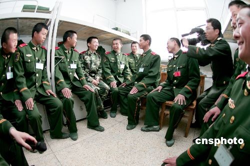 3月21日,《士兵突擊》中扮演許三多的新星王寶強(qiáng),應(yīng)邀來(lái)到武警河北總隊(duì)邢臺(tái)市支隊(duì)新訓(xùn)大隊(duì),與新兵面對(duì)面交談,共話軍旅人生。中新社發(fā) 余洪恩 攝