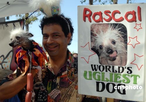 圖為戴恩·安德魯自稱愛(ài)犬拉斯科是“世界上最丑的狗”。中新社發(fā) 張煒 攝