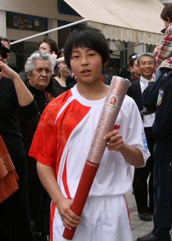 北京奧運圣火傳遞第八棒。中希時報 汪鵬攝