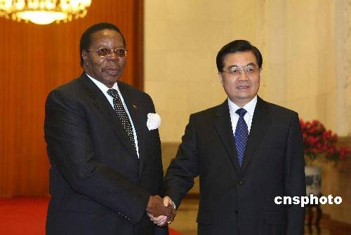 3月25日,中國國家主席胡錦濤在北京人民大會堂舉行儀式,歡迎來訪的馬拉維共和國總統賓古·瓦·穆塔里卡。中新社發 盛佳鵬 攝