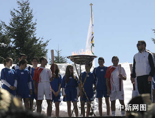 3月26日,北京奧運會圣火希臘境內(nèi)傳遞第三日,抵達冰雪覆蓋的山城邁措翁。圣火在冰雪世界熊熊燃燒。中新社記者 王歡