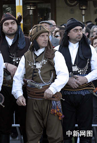 3月26日,北京奧運會圣火希臘境內傳遞第三日,抵達當天最后一個城市韋里亞。當地市民盛裝參加慶典儀式。中新社記者 王歡