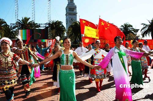 組圖:海外同胞支持北京奧運 護衛圣火傳遞 (7)