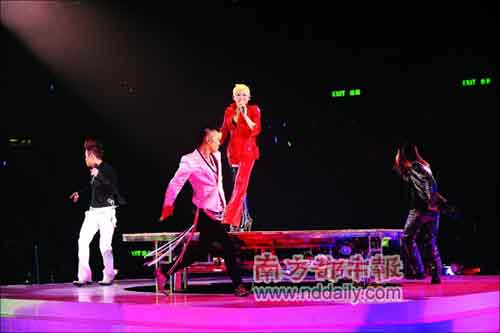 草蜢唱著《SoSad》登場,一身緊身紅色舞衣黑色長靴的劉美君給他們伴舞,沒想,忽然以手從蘇志威敏感部位穿過,意識大膽,后又以一對三,大跳熱辣舞步,草蜢三子風頭完全被劉美君蓋過。不過草蜢隨后演唱《忘情森巴舞》引發現場觀眾大合唱,同樣激爆全場。