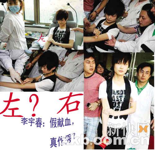 但是李宇春此次義舉卻被網(wǎng)友質(zhì)疑是一場(chǎng)做秀,有網(wǎng)友在論壇貼出圖片,“揭發(fā)”李宇春獻(xiàn)血的手忽左忽右。昨日記者致電天娛負(fù)責(zé)藝人管理的胡小姐,對(duì)方對(duì)做秀傳言表現(xiàn)得很氣憤,說(shuō):“現(xiàn)在這個(gè)時(shí)候,如果這種事都還造假,那就根本不配做藝人,甚至不配做人。”