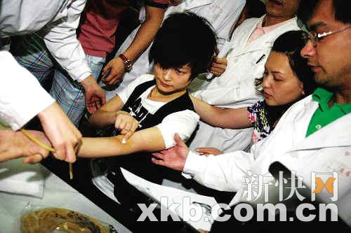 昨天記者向天娛求證,得到的回應(yīng)是李宇春確實(shí)在13日下午到北京市紅十字會(huì)血液中心為災(zāi)區(qū)人民獻(xiàn)了200毫升血,更透露李宇春因?yàn)闀炑I(xiàn)血時(shí)一直是把臉別過(guò)去的,不敢看針管。