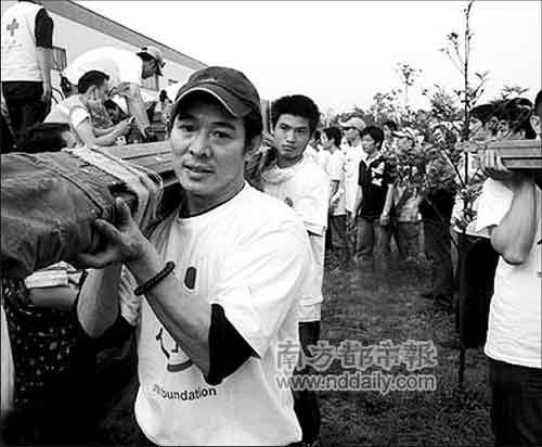 李連杰近日親赴汶川地震災區前線。除了帶去3噸多救援物資、50多萬人的捐款,以及兩支救助志愿者隊伍外,更身體力行親自上陣,搬運帳篷,參與重建。昨天上午,李連杰在成都出席“中國紅十字會李連杰壹基金5·12四川地震賑災臨時指揮部”成立發布會。據悉,臨時指揮部已構建起三個小組:統籌組、物資運輸組和外聯組。李連杰表示,“明天第三批物資要過來,近期會在江油等地建立壹基金之家,幫助130多所學校的學生復課。”截止到昨天中午12時,壹基金已籌集善款5654.57萬元人民幣,有超過66萬人次參與捐款。不少網友感動地稱,李連杰是一個“超級英雄”。