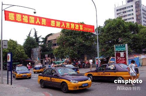 5月26日,四川地震災(zāi)區(qū)綿陽(yáng)街頭打出“感恩祖國(guó)人民,感謝人民解放軍”的橫幅。四川汶川8級(jí)大地震發(fā)生后,中國(guó)各地發(fā)揚(yáng)“一方有難 八方支援”的精神,以捐款捐物、救治傷員、對(duì)口支援等形式全力支持災(zāi)區(qū)抗震救災(zāi),約有10萬余名軍隊(duì)人員參與到此次救援抗災(zāi)中。中新社發(fā) 劉萬強(qiáng) 攝