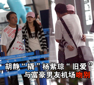 胡靜與那位男士溫馨告別的一幕,確定無疑地證明兩人間的戀人關系,事后經記者比照網上登出來的胡靜與富豪男友買鉆戒的照片,確定在機場與胡靜依依惜別的那位男士正是她的馬來西亞男友朱兆祥。