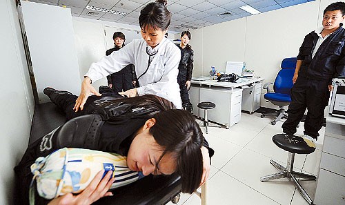 訓練中受傷是難免的,簡單處理后女隊員又要重返訓練場。