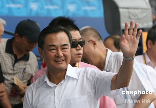 國臺辦主任王毅觀看中華臺北棒球隊比賽。中新社發 武仲林 攝