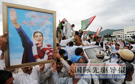 狂喜的人民黨支持者在總統(tǒng)府前久久不愿離去,然而,他們高呼的口號卻是“貝·布托萬歲”