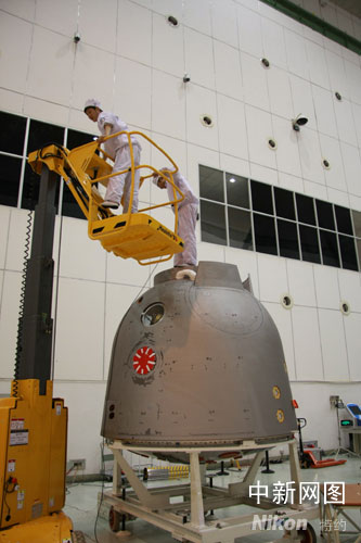 二十三日上午,神舟七號(hào)載人航天飛行任務(wù)進(jìn)行了發(fā)射場(chǎng)區(qū)最后一次船箭地聯(lián)合檢查,標(biāo)志著“神七”載人飛船已進(jìn)入發(fā)射倒計(jì)時(shí)。圖為飛船返回艙測(cè)試資料圖片。