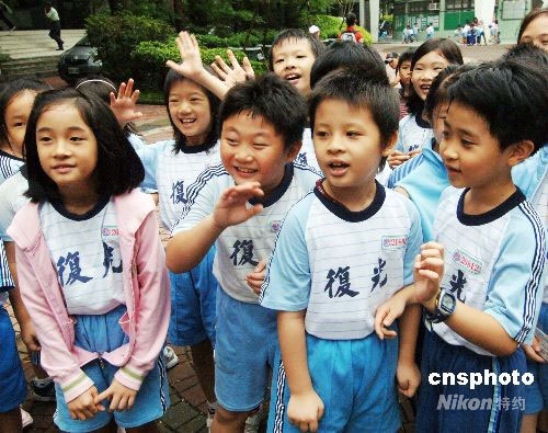 圖:臺北光復小學學生歡迎福建小營員的到訪