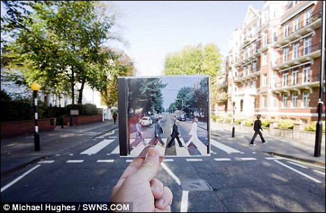 甲殼蟲樂隊的《Abbey Road》專輯封面與倫敦街景的結合