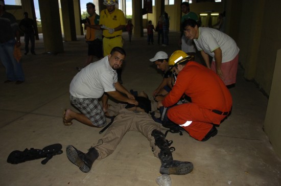 當(dāng)時(shí)體育場(chǎng)內(nèi)正在進(jìn)行足球賽,體育館頂部水泥石塊突然坍塌,兩名防暴警察不幸身亡。比賽不得不暫停40分鐘。