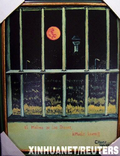 查韋斯是委內(nèi)瑞拉聯(lián)合社會黨的創(chuàng)始人。他1993年被關(guān)押在米蘭達(dá)州的亞雷監(jiān)獄時畫了這幅《亞雷的月亮》。查韋斯是因?yàn)轭I(lǐng)導(dǎo)1992年2月4日反對時任總統(tǒng)佩雷斯的政變失敗而被關(guān)押的,他作畫時已在監(jiān)獄里呆了近兩年。今年5月,查韋斯把這幅畫捐給了委內(nèi)瑞拉聯(lián)合社會黨,用于為11月的地方選舉籌款。
