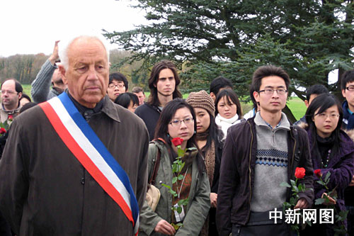 中新網巴黎11月15日電 (黃滟稀) 為紀念一戰結束九十周年,緬懷為法捐軀華工先輩,近百名旅法華人、留法中國學生以及法國友人15日在法國北部諾萊特華工墓園舉行了莊重的祭奠儀式。