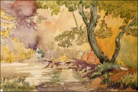 據當地媒體報道,在這些畫作中,有一幅據信是希特勒的自畫像,畫面中的男子身著棕色服裝,凝視著葡萄酒色的河水,畫作落款時間是1910年,簽名是希特勒的名字“A.Hitler”,而在畫中人物的身上則草寫著希特勒名字的縮寫“A.H.”。這幅畫以1萬英鎊拍出,買家稱打算將這幅畫掛在家中或辦公室里。