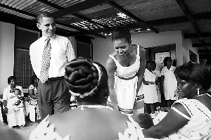 很多加納人對奧巴馬這位有著非洲血統(tǒng)的美國總統(tǒng)的到來持歡迎態(tài)度。這幾天,加納首都的主要街道被奧巴馬和米爾斯的畫像裝點得“非常熱鬧”。奧巴馬一家的大幅海報成為街頭小販兜售的“暢銷貨”。