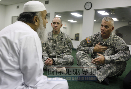 美國兩名隨軍牧師與一名阿訇7日在得克薩斯的一家穆斯林社區中心會面。哈桑此前曾在這里禱告。路透社