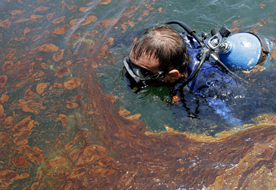 中新網6月22日電 據外媒報道,墨西哥灣漏油已經持續整整兩個月了,現在依舊未止。有數字顯示,截至目前可能已有1.25億加侖原油從破裂油井泄出,成為美國史上最嚴重的環境災難。美聯社等媒體發布了一系列漏油兩個月來的照片,墨西哥灣受到污染的海水讓人觸目驚心。