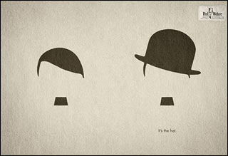 據英國媒體報道,在Hut Weber公司的這則廣告中,喜劇演員卓別林的圓頂禮帽下是希特勒標志性的頭發和胡須。下方,一行英文寫道:“這就是帽子。”