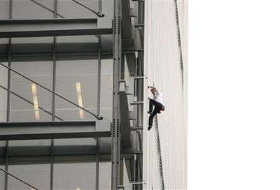 法"蜘蛛俠"徒手爬上紐約時報大樓 呼吁環(huán)保(圖)