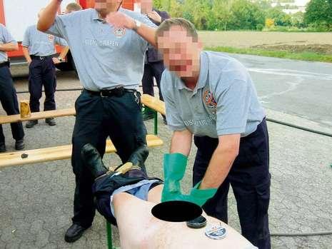 歐爾-艾根施威格消防隊在新人入職時將他赤身裸體的捆綁在長椅上,用水噴他,并讓他躺在泥漿里。