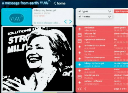 發(fā)送的信息中包含了英國倫敦的標志性建筑“倫敦眼”、“愛丁堡城堡”的照片,希拉里·克林頓及一些知名電視主持人的照片,還包括Bebo網站的網友書寫的關于對生命、理想及地球風景的詩歌文章等。其中一則信息寫道:“我希望我能活著看到兩個世界相互交流的那一天。”
