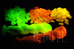這種蠶被導入了水母、珊瑚等的熒光蛋白質基因,所結的繭在自然光照射下呈淡綠色或粉色,但經藍色發光二極管等光線照射后,通過濾鏡觀察則呈熒光色。