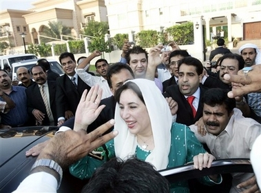 巴基斯坦總統穆沙拉夫希望在選舉中得到布托政黨的支持。兩人后來達成協議,當局終止對布托貪污罪名的指控。另一方面,巴基斯坦最高法院今年8月裁決,被政變趕下臺并流亡國外的前總理謝里夫可以回國。