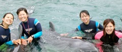 和海豚嬉戲的游客