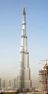 正在修建中的“迪拜塔”現已逾160層樓高,經過4年的施工,外部幾乎完成,內部工作亦已展開,計劃于明年9月落成。