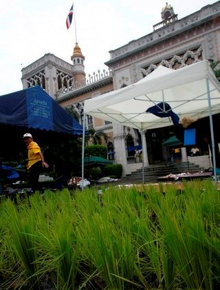 泰國示威者在總理府種水稻