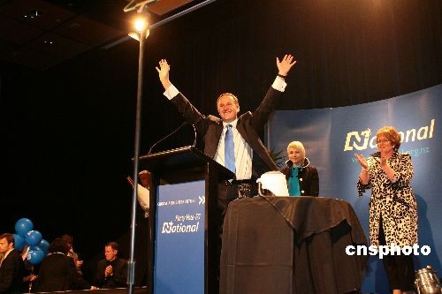當地時間11月8日,2008新西蘭大選最后以國家黨勝出而告終,國家黨黨魁John Key當選新西蘭下一屆總理。中新社發(fā) 李凌昊 攝