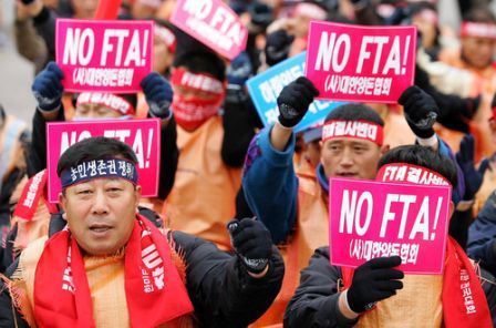 中新網(wǎng)11月26日電 據(jù)星島環(huán)球網(wǎng)報道,近萬名韓國農(nóng)民25日在首爾示威,要求國會否決韓美自由貿(mào)易協(xié)定。韓國民間團體此前也舉行過多場示威,抗議韓國政府進口美國牛肉,但總統(tǒng)李明博態(tài)度強硬,民眾未能如愿。