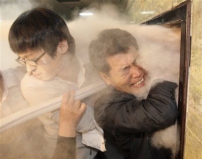 韓國議員爆發激烈沖突 使用滅火器當"武器"(圖)