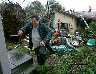 據加州州長緊急服務辦公室發言人說,在洛杉磯的奇諾市,一名婦女企圖逃離拋錨的汽車時,被洪水沖走;一名在薩克拉門托尤巴市的工人則被倒塌的大樹壓死。