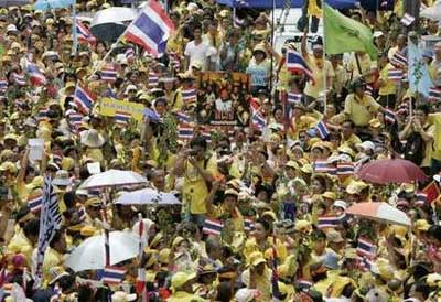 示威者領指,約萬名示威者從五個方向涌往政府大廈,其中約千人突破了警察組成的防線,涌進政府總部大樓范圍。示威者聲言會一直留在原地進行示威活動。有目擊者稱有數人在混亂的沖突中受傷。據消息人士透露,泰國總理沙瑪20日沒有在大廈內辦公。
