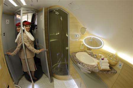 A380的頭等艙乘客可在43000英尺的高空享受花灑浴。