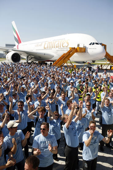 據(jù)悉, 28日在德國漢堡附近的芬肯韋德,空中客車公司總裁兼首席執(zhí)行官托馬斯•恩德斯把A380客機(jī)中的第一架交付給阿聯(lián)酋航空公司。