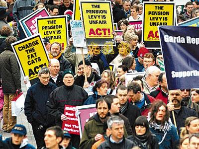 中新網(wǎng)2月23日電 受環(huán)球經(jīng)濟衰退影響,再有歐洲國家爆發(fā)大規(guī)模示威。據(jù)香港《文匯報》報道,12萬愛爾蘭人21日走上首都都柏林街頭,抗議政府拯救經(jīng)濟不力。參與示威的包括教師、公務(wù)員甚至警察,由于人數(shù)太多,主辦單位要提早出發(fā),人龍一度填滿長達兩公里的游行路線。