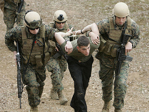 美國海軍陸戰隊太平洋反恐安全小組的成員模擬抓捕“入侵者”。